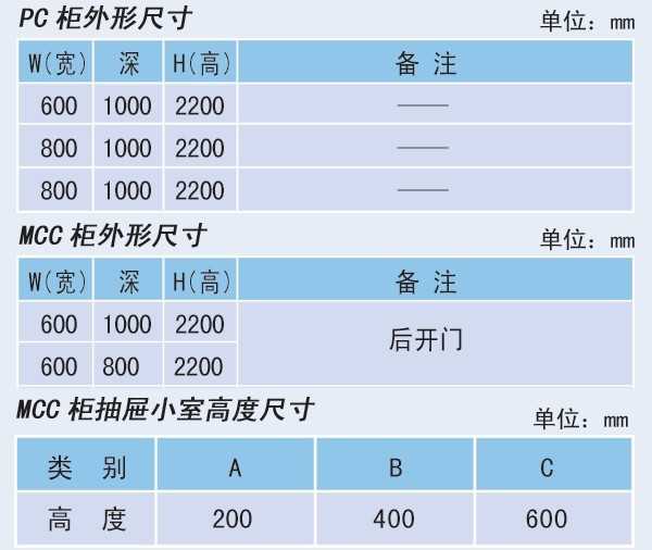 1、抽屜層高的模數為200mm。分為1/2單元、1單元、1.5單元、2單元、3單元五個尺寸系列。單元回路額定電流630A