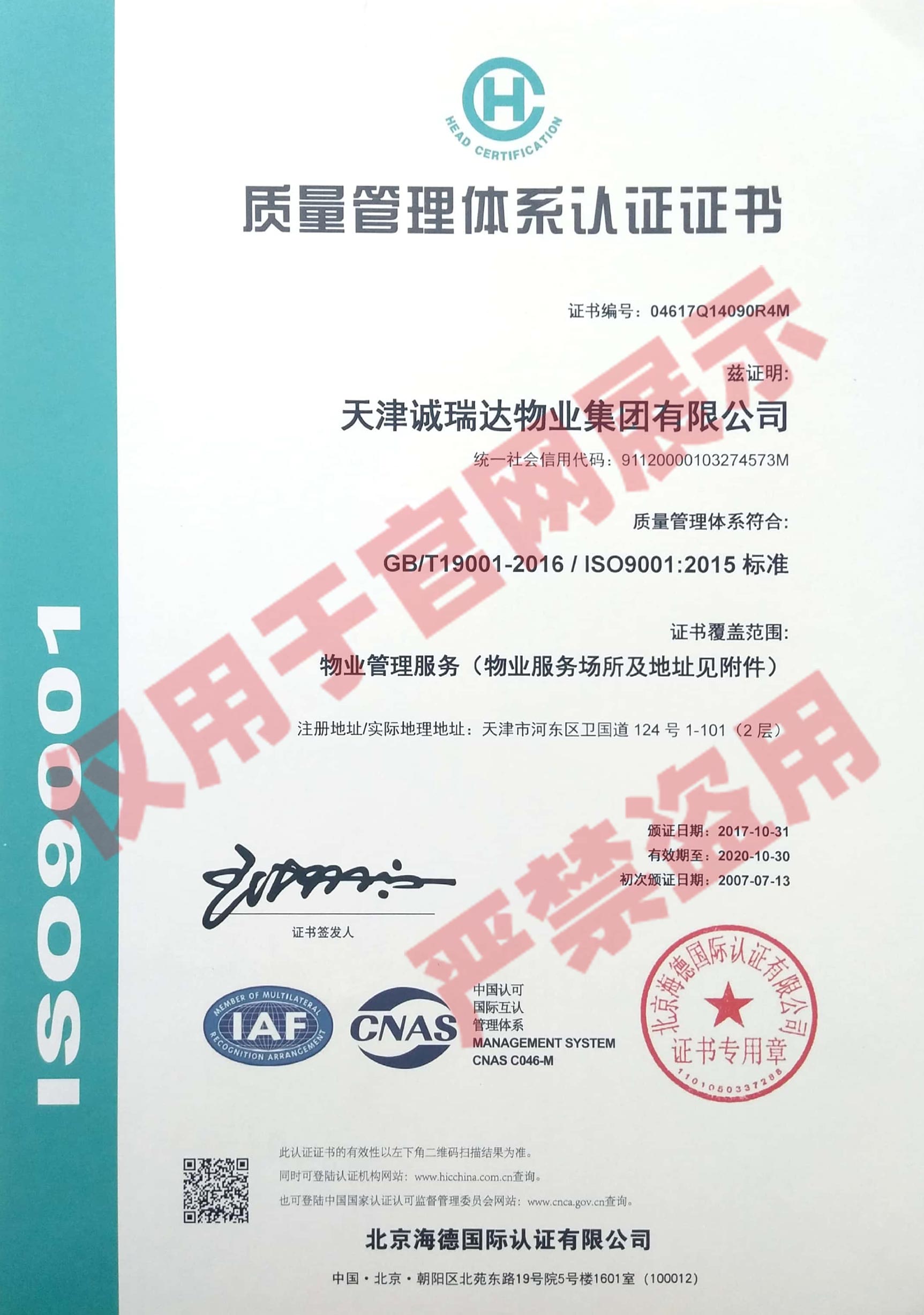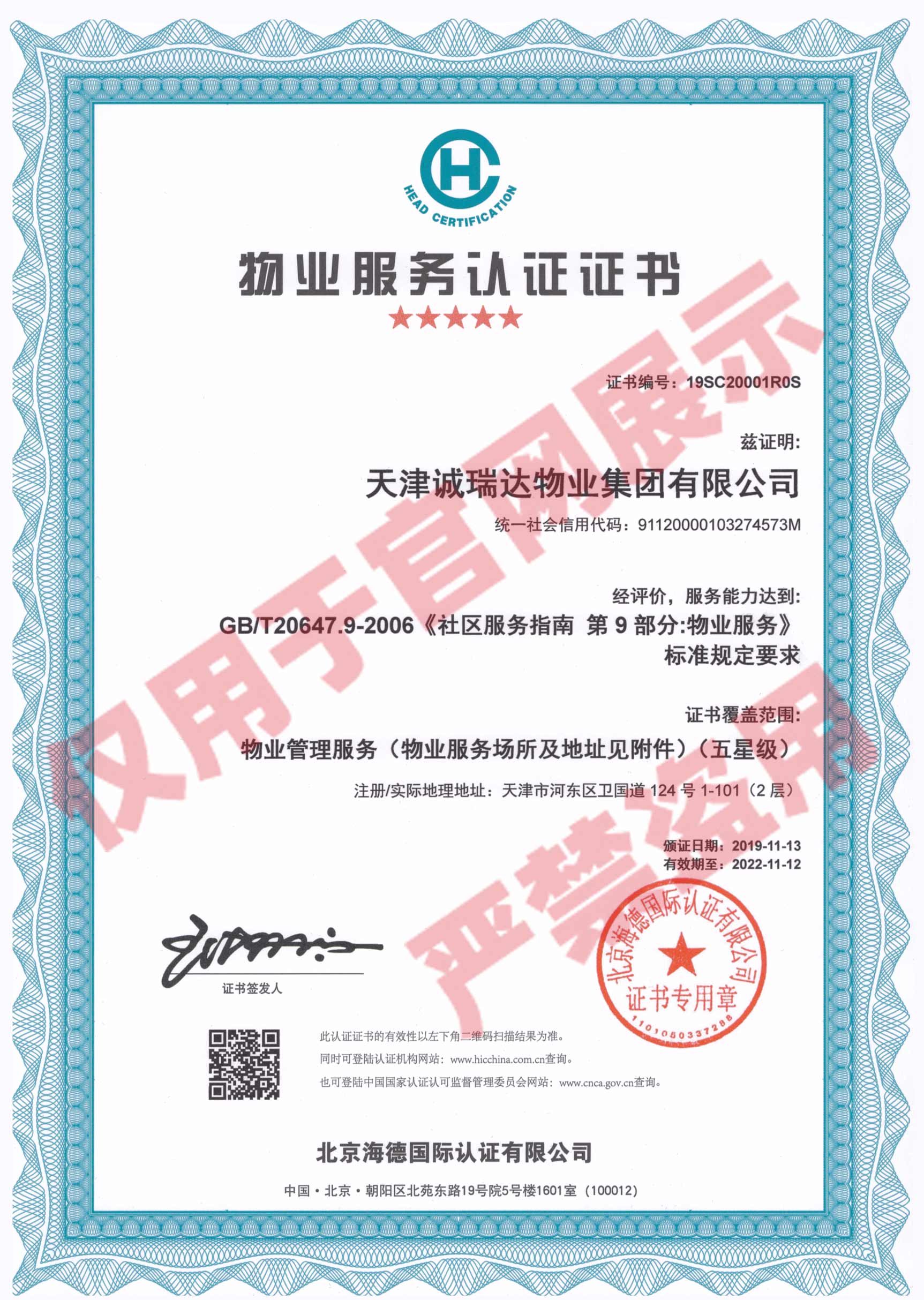 天津誠瑞達物業集團有限公司成立于1995 年9月12日,注冊資金為人民幣一億元,公司以綜合性物業服務、保安服務、企業消防托管、工業設備保潔、建筑勞務、電力設備檢修及運行維護、酒店管理為七大主營業務,下轄全資子公司10 家,承接各類項目共 200 余個,管業面積超過 1000 萬平方米,項目類型涵蓋企事業單位辦公樓、酒店、工業車間、工業園區、學校、商業、住宅和食堂托管等諸多領域,服務項目遍及全國 28 個省市、自治區。